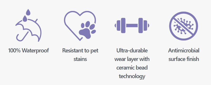 Advantages of Rigid Core Flooring Shrinkage and expansion is ½ of LVT Stronger hardness, it is less affected by uneven ground High density to 2000 kg/m3 Better heat resistance ,withstands intense direct sunlight Better Impact resistance | ![]() |